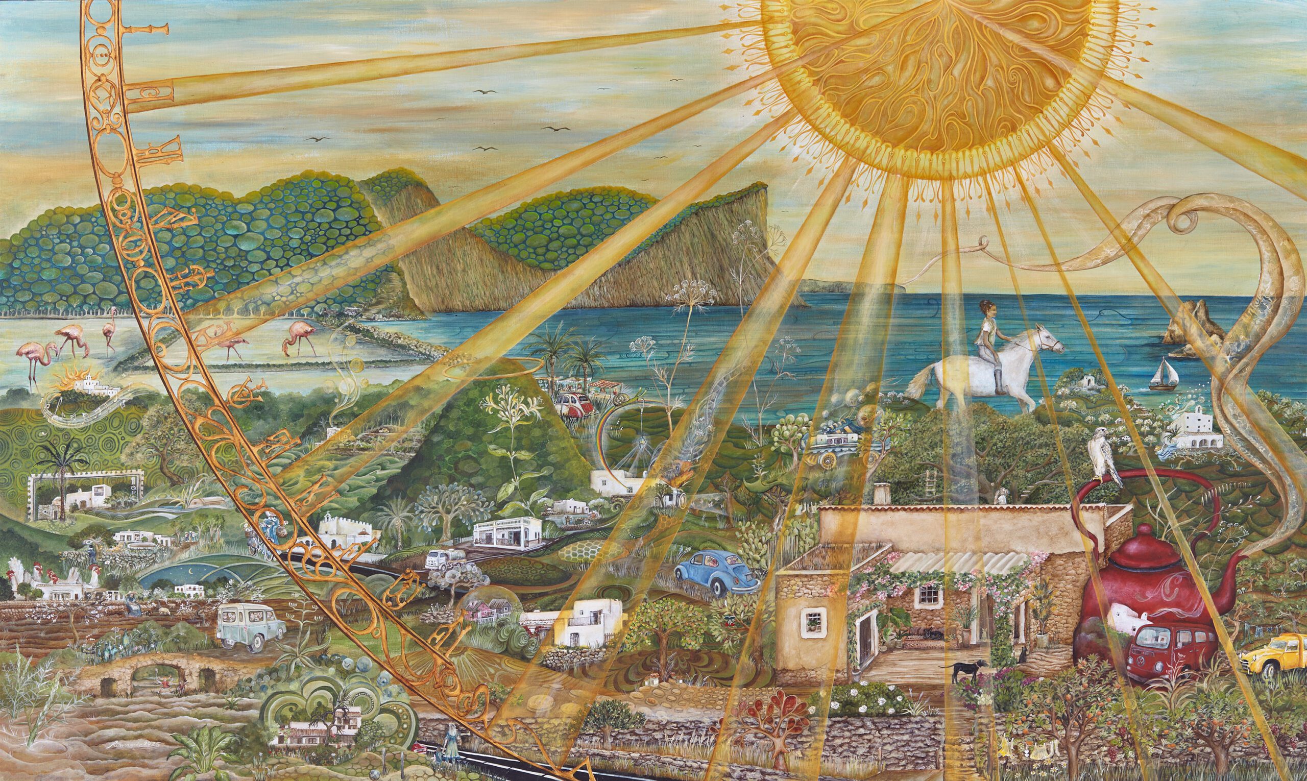 En la exposición, cada cuadro se vincula a una vivienda concreta y a los objetos simbólicos que marcaron su experiencia en ella. Desde la casa familiar de Can Pep Mateu, en Sant Jordi, hasta espacios que dejaron huella en su vida adulta, como Ca Na Blaia en Forada o su actual hogar en Can Llugat, la artista traza un mapa emocional que refleja tanto su vínculo con el paisaje ibicenco como la transformación del patrimonio arquitectónico de la isla.