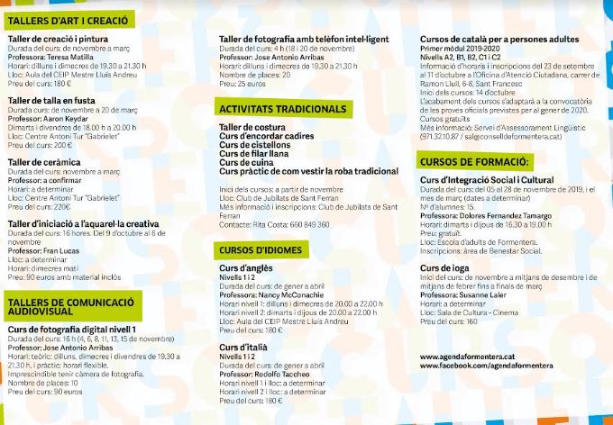 @Noudiari / El Consell de Formentera presenta l’oferta de cursos i tallers de tardor i hivern per a persones adultes. L’objectiu és oferir una àmplia varietat per cobrir la demanda formativa i d’oci generada des de la ciutadania resident a l’illa.