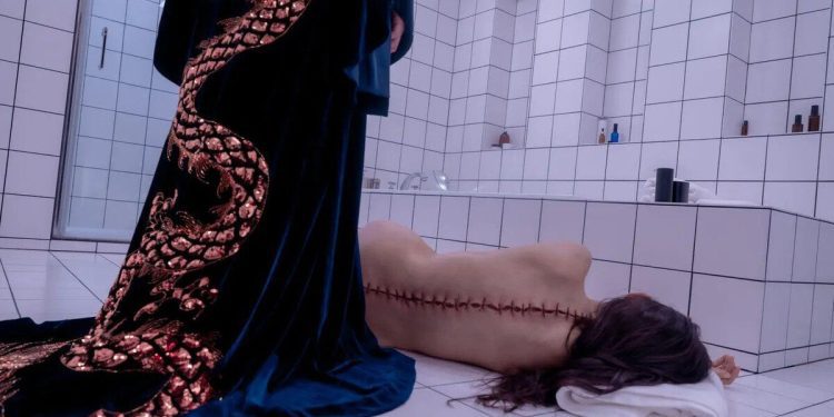 La directora Coralie Fargeat, en su segundo trabajo tras la destacable Revenge (un “rape ande revenge” bastante más tradicional, eso sí) nos demuestra ya en los dos primeros minutos de la cinta hasta dónde va a ser capaz de llevar su genialidad. La dirección excesiva, los juegos de espejos, los contrastes cromáticos, el nervio y la pausa, todo al servicio de una dirección que merecería todos los premios, y que, perdonen la exageración, enamoraría a Kubrick. Ella misma firma un libreto brillante que ganó el premio al mejor guion en Cannes. Un guion abrumador, que salpica a diestro y siniestro contra la tiranía de la apariencia física, de la juventud, del machismo de la industria, de la cosificación de la mujer y de los fantasmas de la nostalgia de lo que ya se fue. Contra todo y contra todos, Fargeat nos dispara a la cara una apología de la destrucción física y emocional.