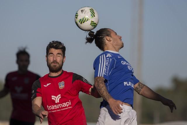 En un principio no le valía el empate a ninguno de los dos. Los formenterenses necesitaban sumar los tres puntos en litigio para mantener el liderato y los de casa para seguir cerca del Alcúdia y la cuarta plaza que ansían. A pesar de que el dominio visitante era evidente este no se traducía en un exceso de acciones de peligro, en parte porque el último pase no encontraba receptor y también porque los locales se sentían seguros en la retaguardia. Solo un cabezazo de Juanfran que se perdió desviado por encima del larguero inquietó mínimamente a los de la pitiusa Sur en el primer tiempo, que terminó con una pequeña tangana sin consecuencias.