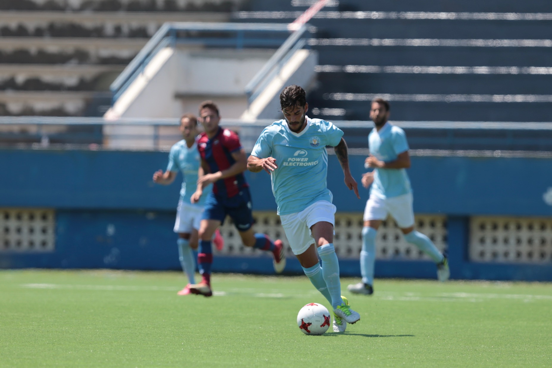 Primer aviso y toda una declaración de intenciones de los futbolistas de la UD Ibiza, que no iba a dejarse amedrentar por la calidad técnica del filial del Levante. Hasta el minuto 36 del primer acto no volvió a verse una buena acción ofensiva en el encuentro, en esta oportunidad a cargo de los visitantes.