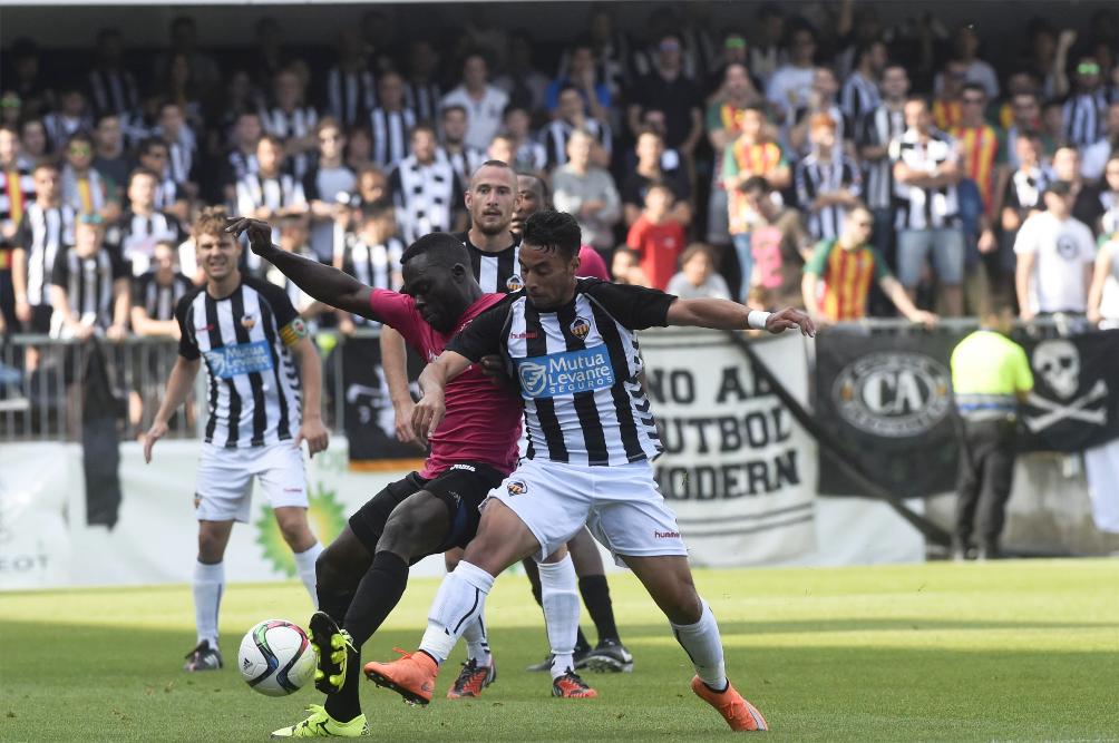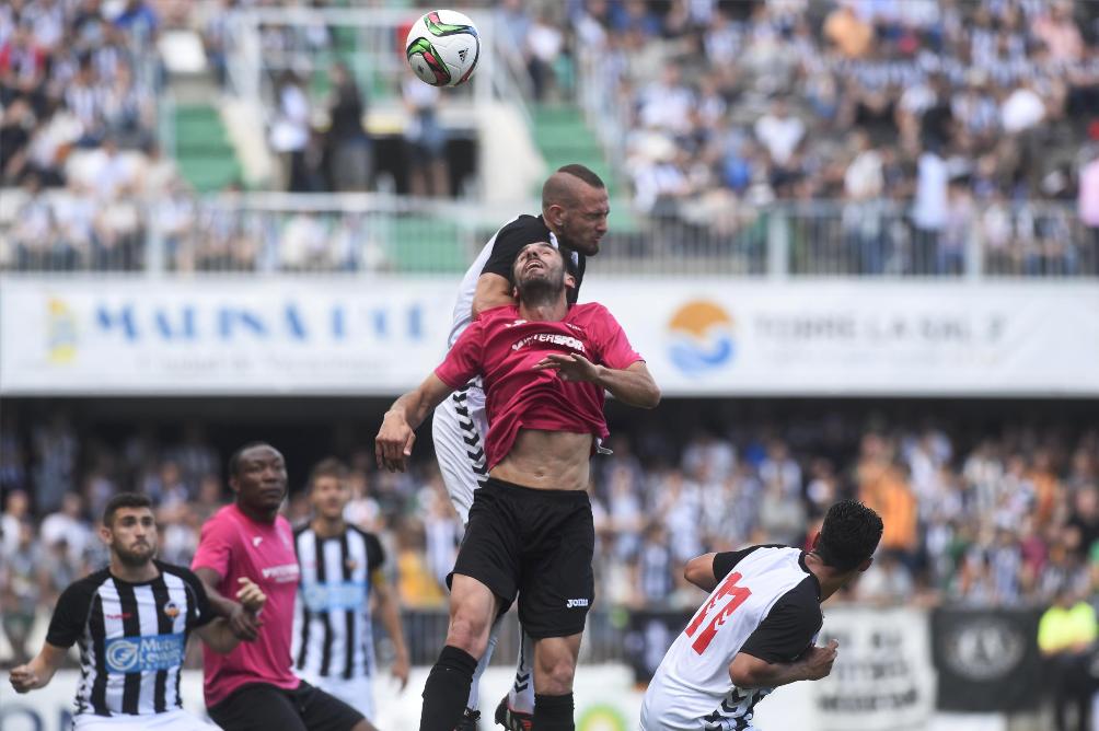 Pacheta pudo marcar en el minuto 8, tras recibir el balón cerca del área pequeña tras una dejada con la cabeza de Winde, pero remató desviado con todo a su favor. Media hora después, el susto de la grada lo protagonizó Borja Pando, tras cabecear picado un centro de Pau Pomar que obligó a lucirse a Álvaro Campos. Estas ocasiones desaprovechas, en un play-off, se pagan caras.