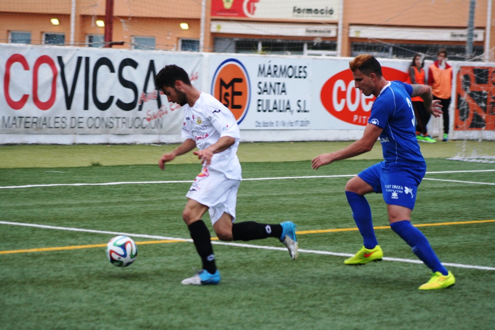 De Pablos y Rafa pugnan por el balón en una acción del derbi disputado en Santa Eulària.