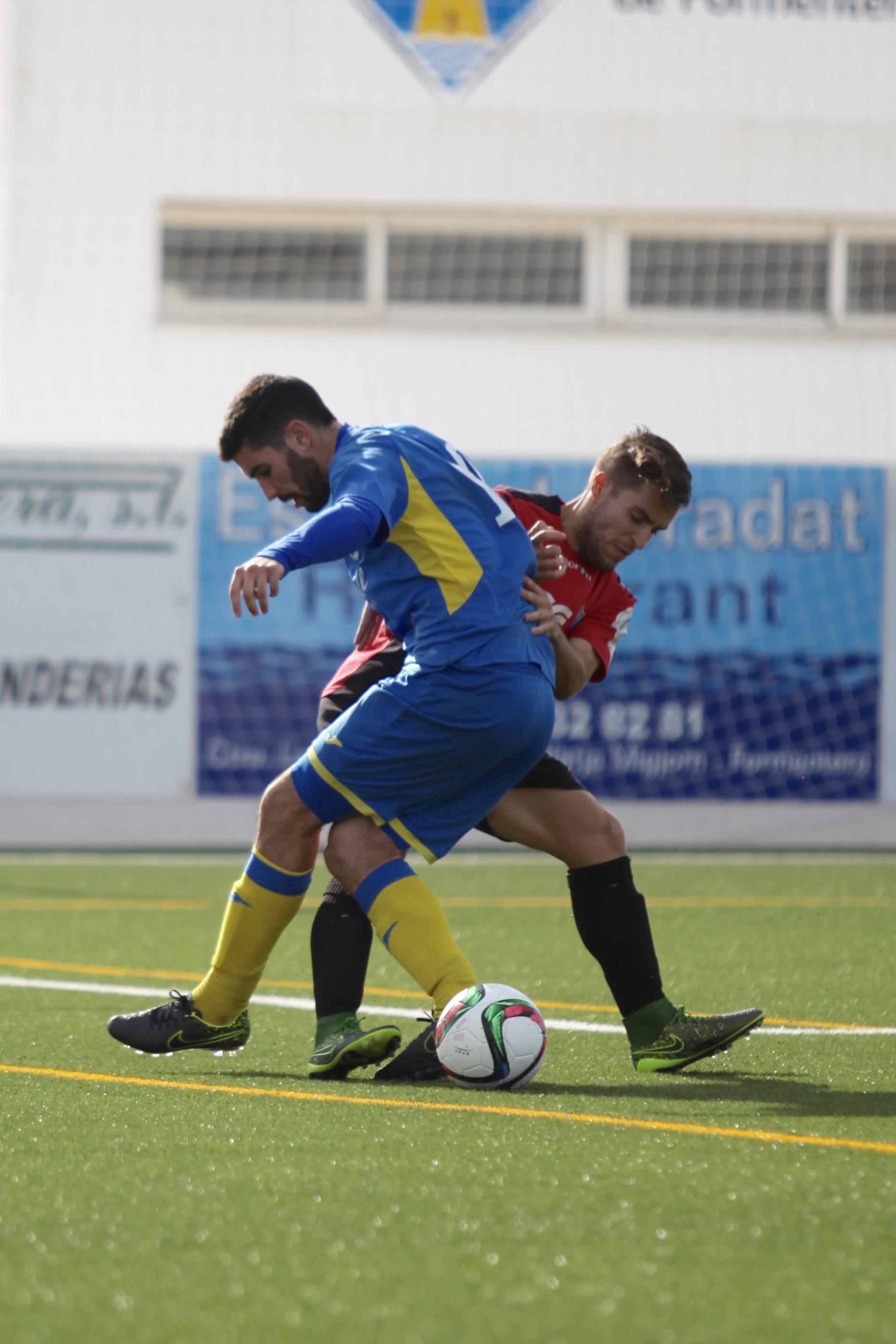 La igualdad fue la tónica dominante del enfrentamiento entre formenterenses y menorquines. El fuerte viento reinante obligó a los dos conjuntos a bajar el balón al piso y fue el Formentera quien más cómodo se encontró en este terreno. Llegaba el equipo de casa a las inmediaciones del área rival pero todas sus ocasiones acababan fuera o en las manos del guardameta visitante.