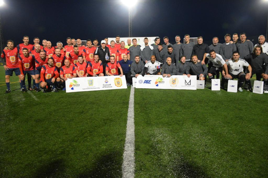 Por su parte, la selección de veteranos de la isla de Ibiza, dirigida por el presidente de la sección de veteranos de la S.D. Portmany, Ángel Miguel Arias, y por Juan Mesa “Labi”, la han compuesto Corral, Juanvi, Toni “Gurupa”, Leo, Javi, Micky Bello, Miguel “Puet”, Miguel “Pep Pera”, Boned, Pepito “Marfil”, José Cívico, Juanan “Puet”, Suso, José Francisco “Pep Pera”, Juan Planells, Jordi, Austin y Marquitos, además de Gero, Santa, Adrián Ramos, Villodre, Llosas, Bartolo, Terri, Fofo, Diego, Pepín, Borja Pando y Robert Pirès.