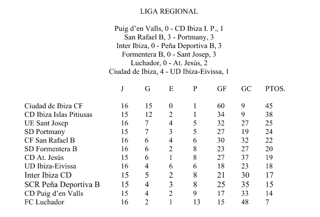 Quien tampoco ha tenido problemas para sumar de forma holgada los tres puntos en juego ha sido la Peña Deportiva en el campo de Inter Ibiza, al que se ha impuesto por 0 a 3. Por último, el Luchador ha caído esta semana en su casa ante un Jesús que sigue empeñado en colarse entre los seis primeros puestos de la competición.