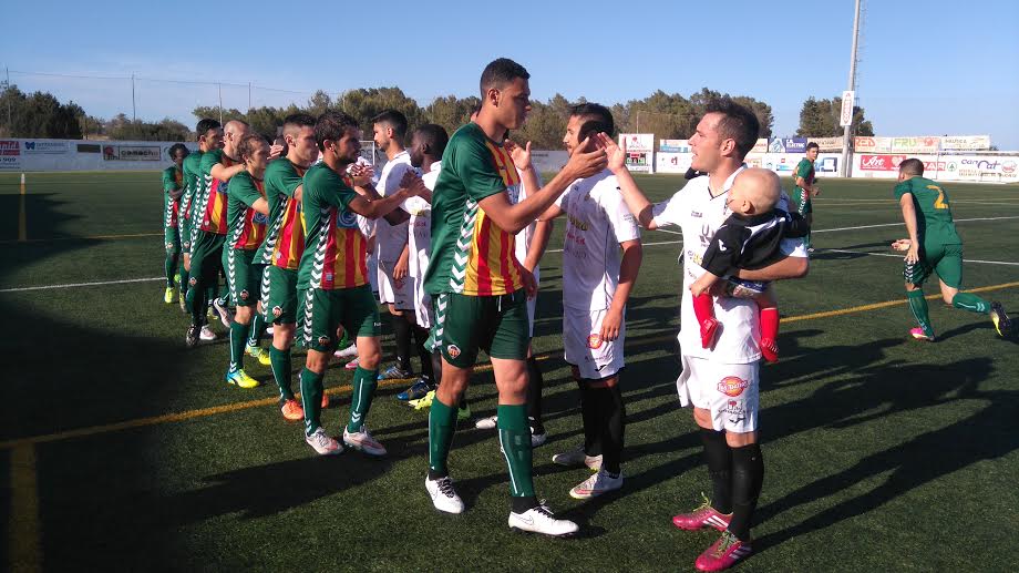 Incidencias: Municipal de Santa Eulària. Unos 900 espectadores, con cerca de un centenar de aficionados del Castellón en el partido de vuelta de la primera eliminatoria de la fase de ascenso a Segunda B.