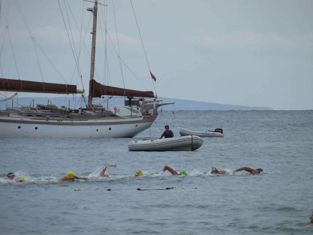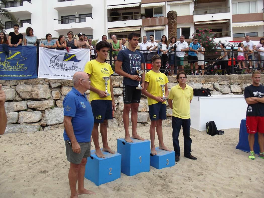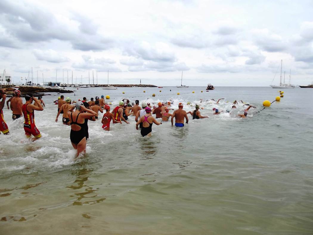 Los primeros en zambullirse fueron los 77 competidores en la prueba larga. Había dos claros favoritos: Alberto Parrilla, todo un especialista en este tipo de travesías, y Ruben García (Club Náutico Santa Eulalia), que se había impuesto en las dos últimas ediciones de la prueba de Santa Eulària.