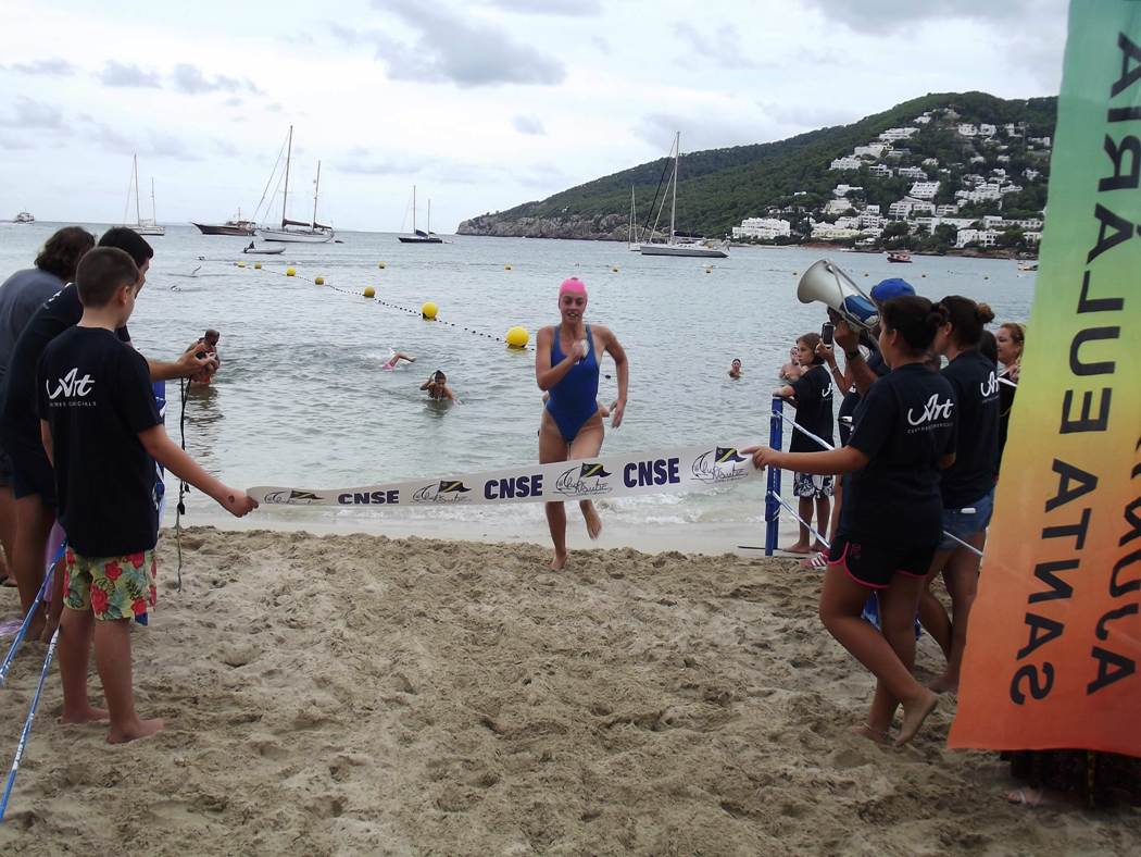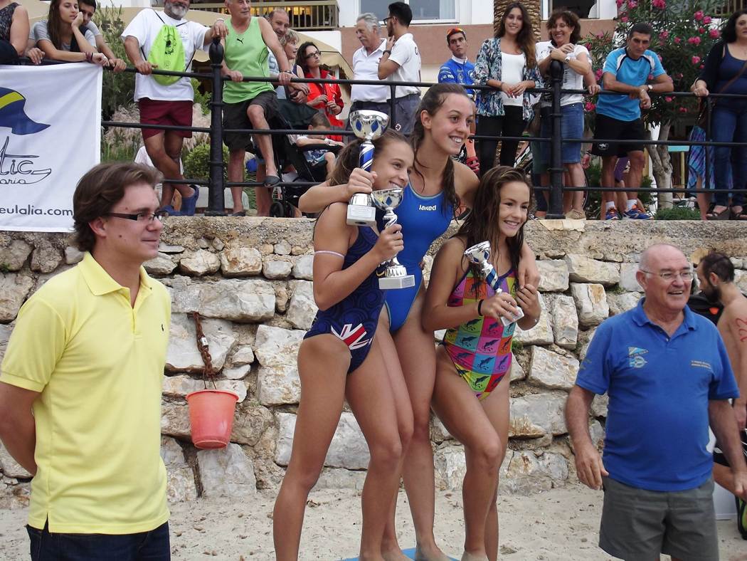 En categoría femenina, la pugna fue más igualada y las tres primeras cruzaron la línea de meta con menos de un minuto de diferencia. El triunfo fue para la nadadora alevín del Club Natació Eivissa Cata Fourcade, con un tiempo de 22’01»47, seguida por Nerea Aguado (22’33»45) y de la vencedora de la pasada edición, Claudia Crespillo (22’50»94). La segunda y la tercera clasificada son del CN Santa Eulalia.