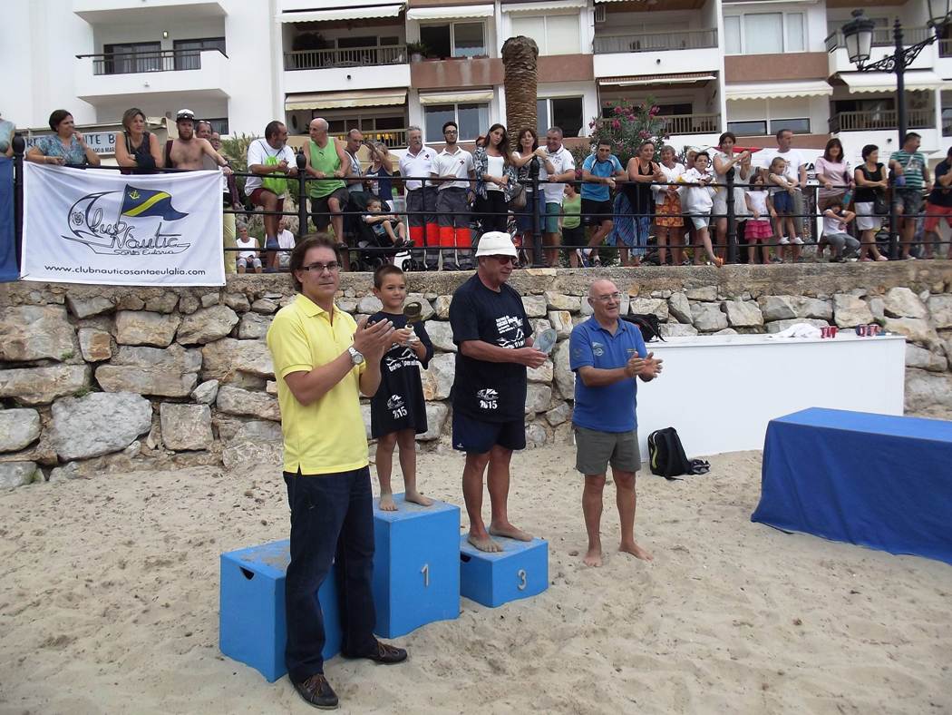 También se entregaron premios al nadador más joven y al más veterano. Sergio Prats, con sólo cinco años, fue el benjamín de la travesía tras completar los 750 metros en algo más de 26 minutos. Por su parte, Carlos Vilàs, que está a punto de cumplir los 72 años, es el ‘abuelo’ de todos los participantes y logró un tiempo de 20’47»50 en los 1.500 metros.