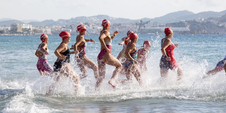 Los 1.000 metros de natación con los que ha arrancado la competición estándar se han llevado a cabo al final de Platja d’en Bossa. Al salir del agua, los triatletas han recorrido los 5 kilómetros de carrera a pie por los senderos adyacentes.