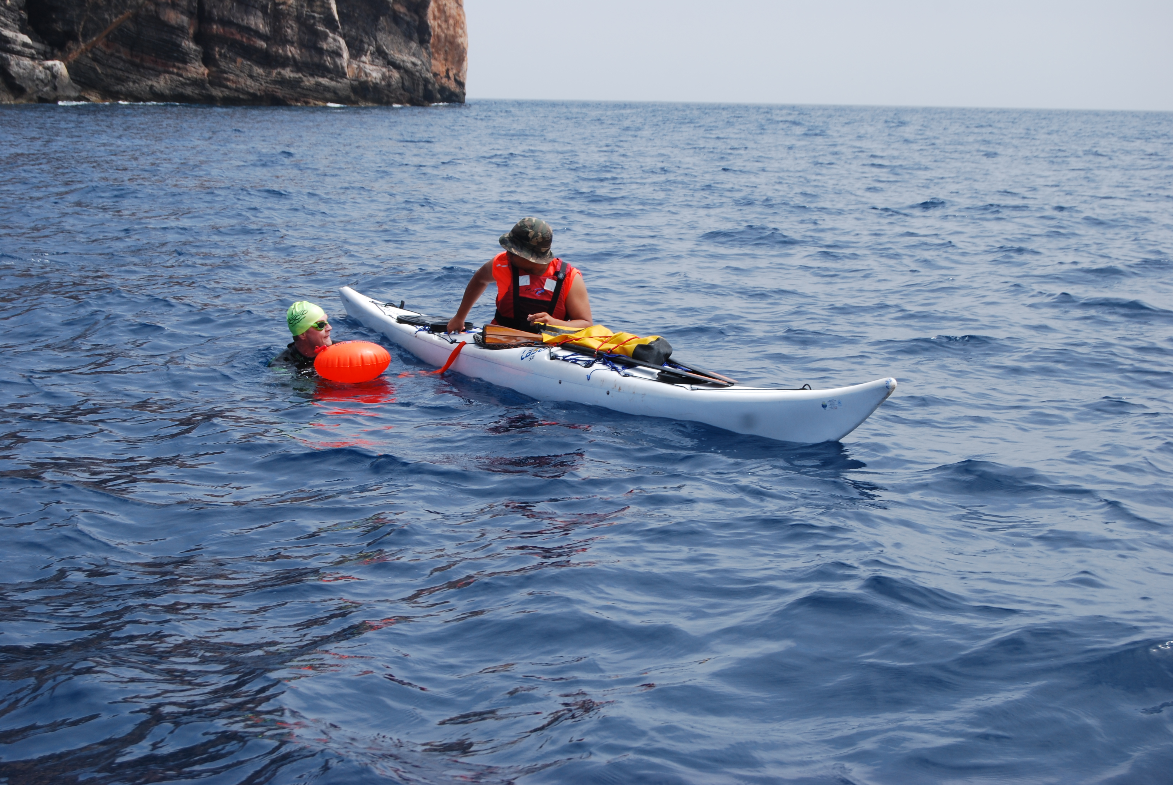@Noudiari / Un total de 14 de los 19 nadadores que este sábado han tomado la salida de la prueba de natación de resistencia en el mar Ultraswim, de 25 kilómetros de recorrido, han logrado el objetivo de cruzar la línea de llegada de una competición con salida y meta en la Escuela de Vela de Santa Eulària y que se ha desarrollado con absoluta normalidad gracias a las perfectas condiciones meteorolígicas.