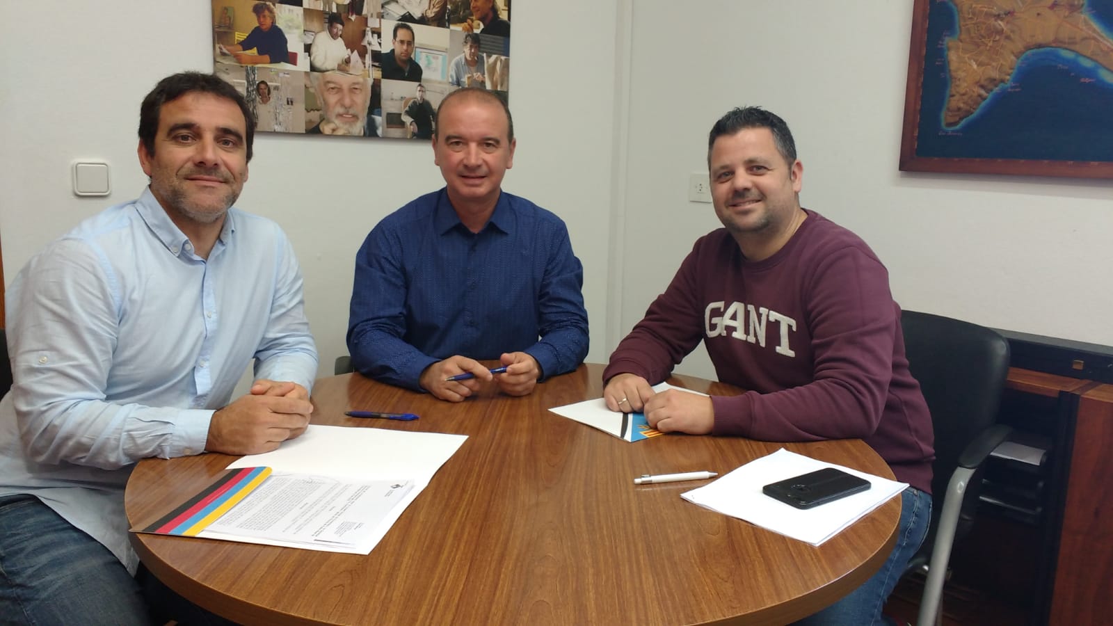 @Noudiari / El president del Consell de Formentera, Jaume Ferrer i el president de la Sociedad Deportiva Formentera, Xicu Ferrer, han signat un conveni de col·laboració per a la coordinació i gestió de l’Escola de Futbol Base de Formentera per l’any 2019.