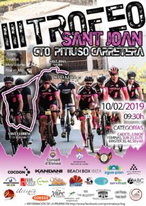 @Noudiari / El municipio de Sant Joan albergará el próximo domingo, día 10 de febrero, la tercera edición del trofeo de ciclismo en ruta que organiza el Portinatx Cycling Team. La prueba, en la que se pondrá en juego el campeonato pitiuso de la especialidad, sumará un total de 75 kilómetros después de dar cinco vueltas a un circuito por Sant Joan, Sant Llorenç y Sant Miquel.