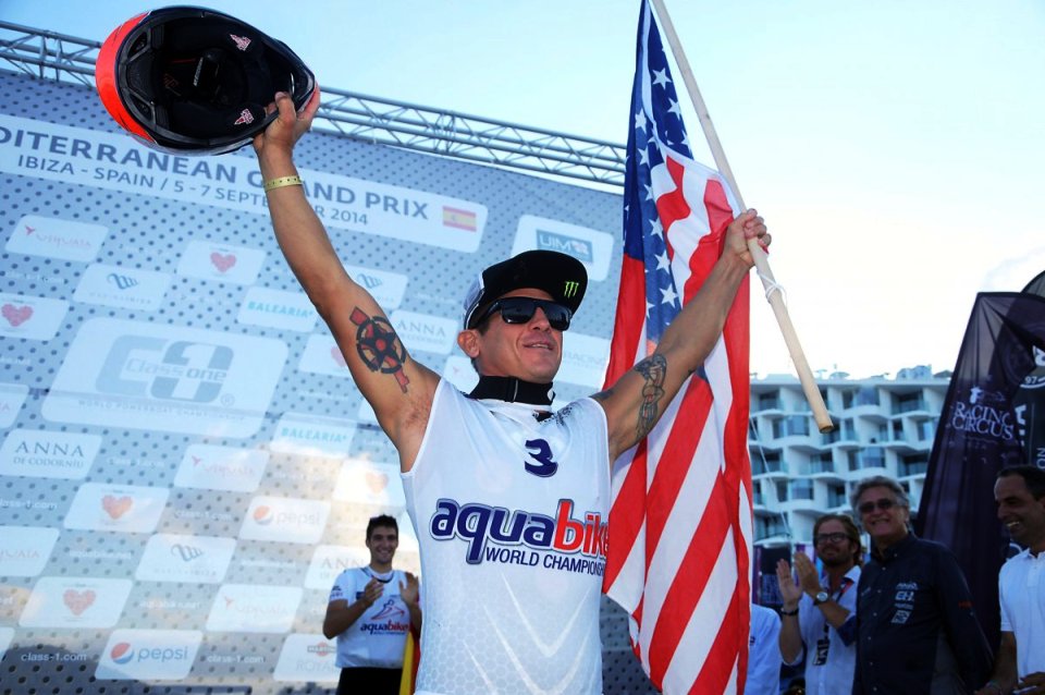 Teddy Pons celebra su triunfo y el liderato en el Mundial de Aquabike una vez finalizada la carrera. Foto: C. V.