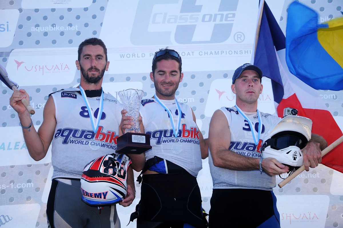 El podio en Runabout GP1, con Teddy Pons, Jeremy Perez y Sebastian Akerblom.
