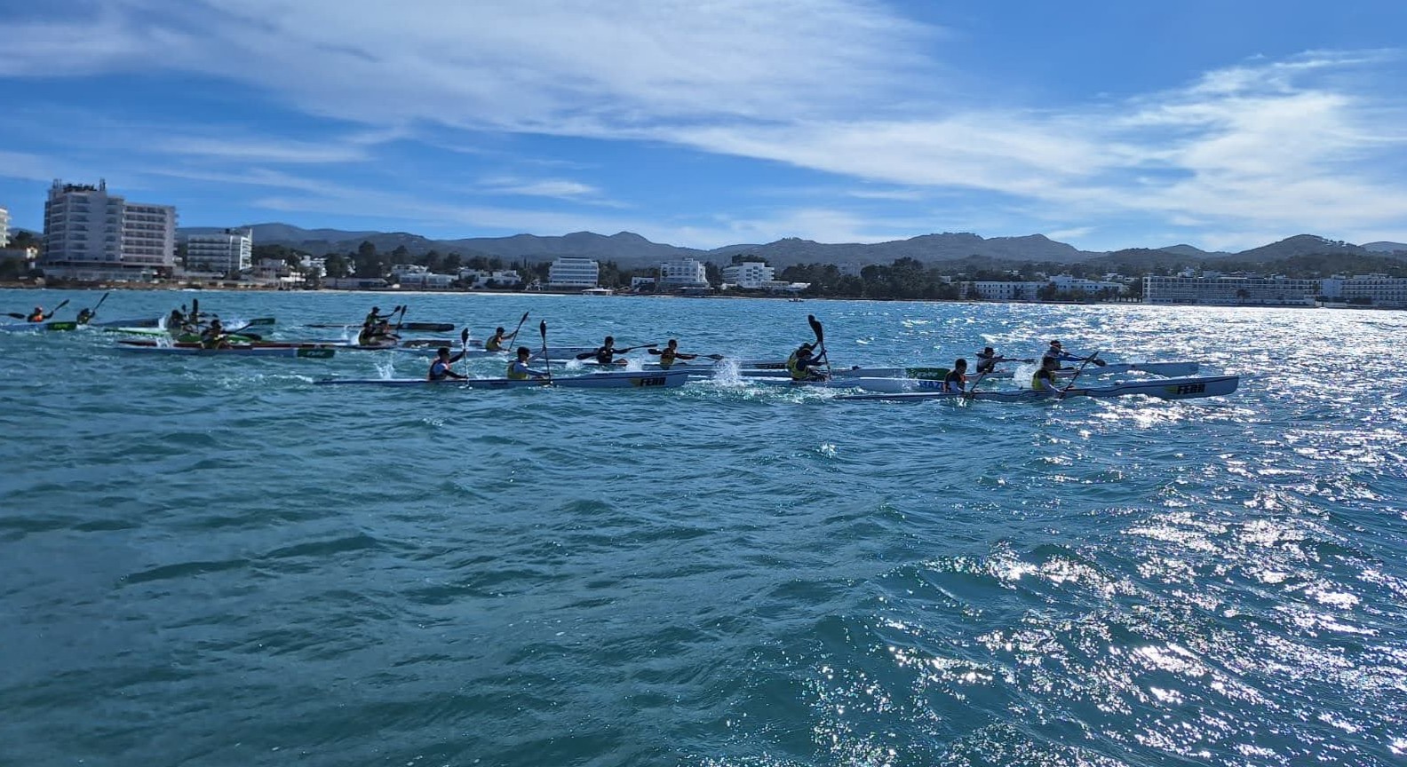 La bahía de Portmany acogió ayer la segunda prueba de la Copa Balear de Kayak de Mar, con la participación de casi 140 palistas de clubes de todo el archipiélago balear. La competición, organizada por el Club Nàutic Sant Antoni (CNSA) y la Federación Balear de Piragüismo, se desarrolló finalmente en un recorrido interior entre el puerto y la orilla sur, tras modificarse los circuitos previstos hacia Cala Salada y el islote de es Pallaret debido a la mala mar.