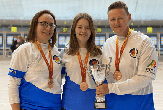 Dos nuevas medallas para el tiro con arco ibicenco en los campeonatos de España tiro en sala que se disputan en Marina d’Or, estas en los absolutos de las categorías mixta y femenina por equipos de arco compuesto, ambas de bronce. La primera ha tenido como protagonistas a Neus Tur y Aarón Hidalgo, que se han hecho con el tercer puesto de su competición, mientras que la segunda la han logrado Magalí Foulón, Neus Tur y Nur Gómez.