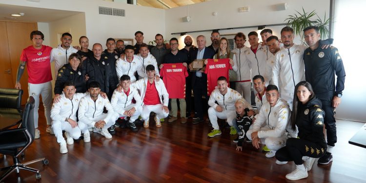 El alcalde del Ayuntamiento de Eivissa, Rafael Triguero, y la concejala de Deportes, Ana Ferrer, han recibido hoy en Can Botino al CD Ibiza para felicitar personalmente al club por ganar el campeonato de la categoría de la 3ª RFEF y lograr el anhelado ascenso a Segunda RFEF.