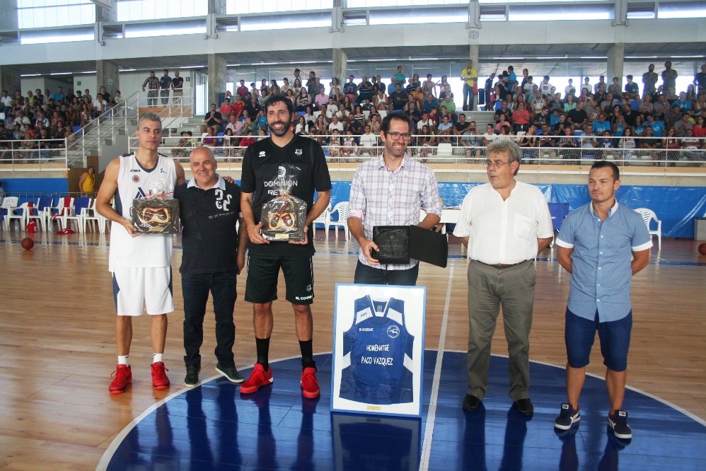 Unos 900 espectadores -en su gran mayoría jóvenes- asistieron este domingo por la tarde la pabellón de Can Guerxo para presenciar el amistoso entre dos equipos de la ACB, que servía de tributo a la carrera deportiva de Paco Vázquez y, además, para celebrar los 30 años de vida del CRiC Ses Salines. Su presidente, Vicente Sanahuja, entregó antes del partido una camiseta del club de Sant Josep al exjugador, además de sendos presentes para el Manresa y el Bilbao Basket. El club bilbaíno, por mediación de su máximo dirigente, Xabier Jon Davalillo, también entregó a Vázquez una camiseta conmemorativa del equipo.
