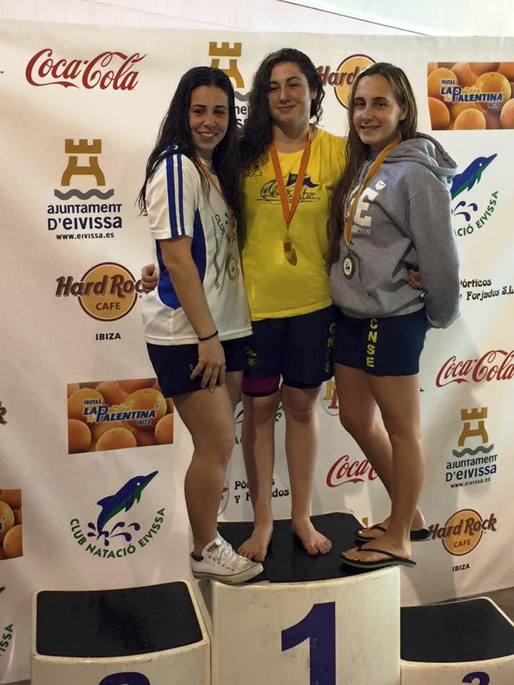 Mónica Orozco, en lo más alto del podio junto a Marta Ribas y Mar Iban.
