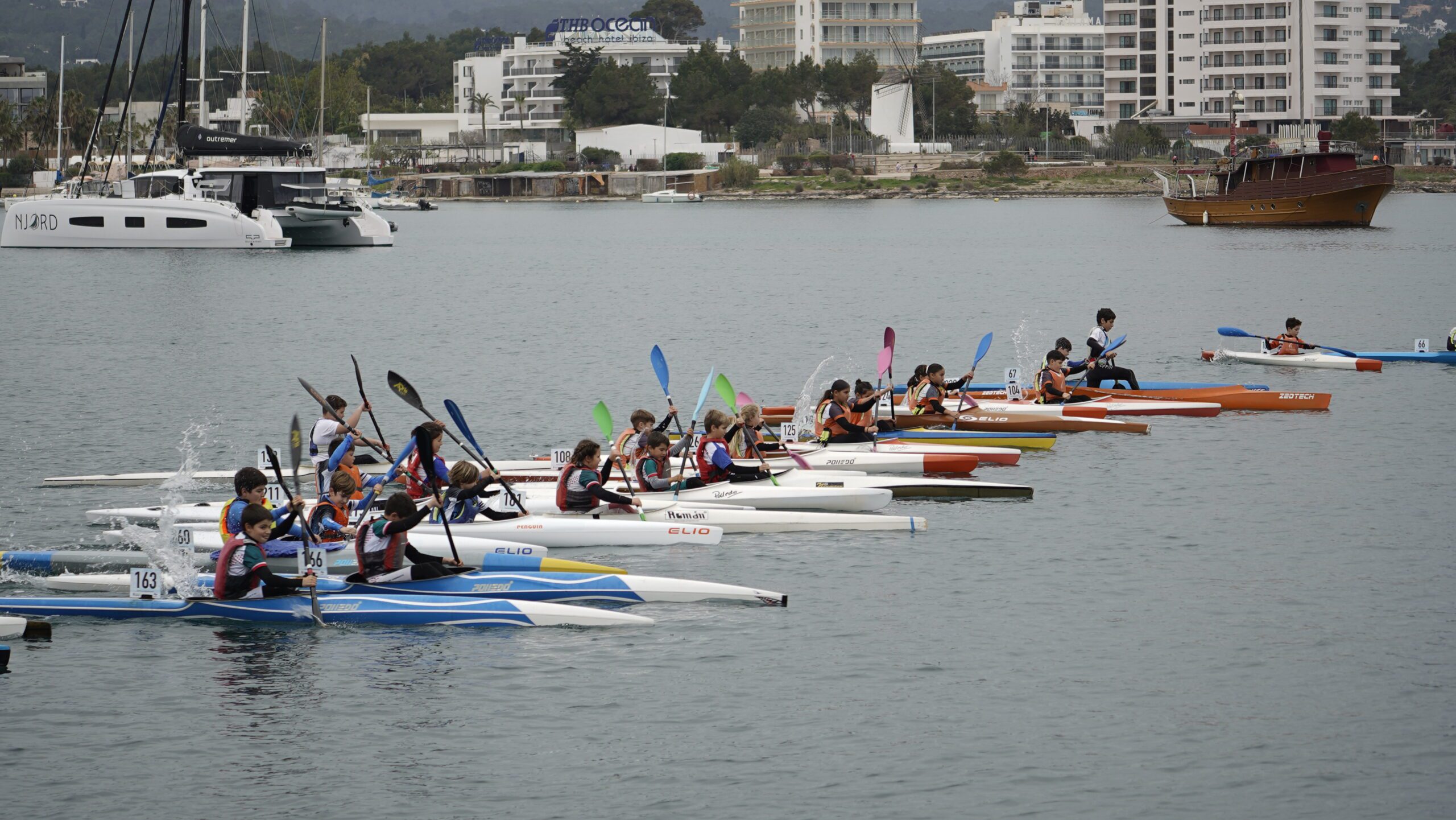 Jornada muy positiva la celebrada el pasado sábado en la bahía de Portmany, donde tuvo lugar la 1ª prueba de la Copa Balear de Jóvenes Promesas, que se había pospuesto el pasado febrero por la amenaza de mal tiempo. Se estrenó circuito en la dársena del puerto, al abrigo del espigón, en lugar de situarse en la playa de s’Arenal, donde este tipo de pruebas deportivas habían tenido lugar hasta ahora. Al buen tiempo se unieron las medallas logradas por los palistas del Club Nàutic Sant Antoni, organizador del evento junto a la Federación Balear de Piragüismo, que obtuvieron un total de doce (cuatro de oro, cuatro de plata y cuatro de bronce), además de la tercera plaza en la clasificación por clubes, siendo primero el Club Marítimo de Mahón y segundo el Real Club Náutico de Palma.
