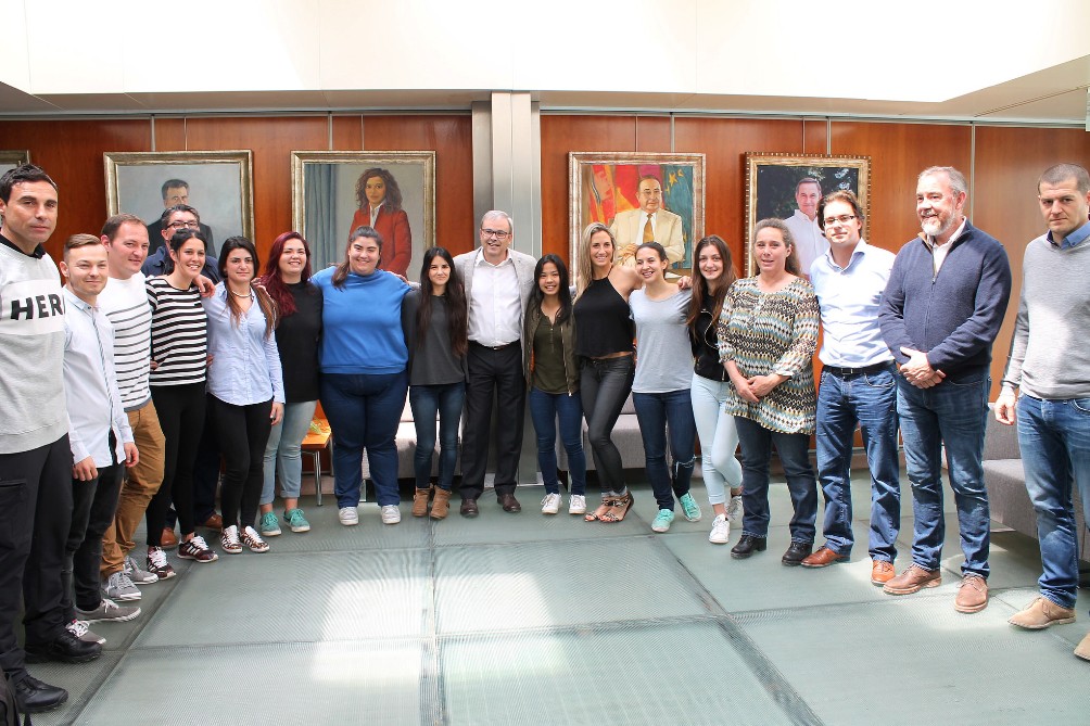 Una imagen de grupo de la recepción del equipo femenino de balonmano en el Consell.
