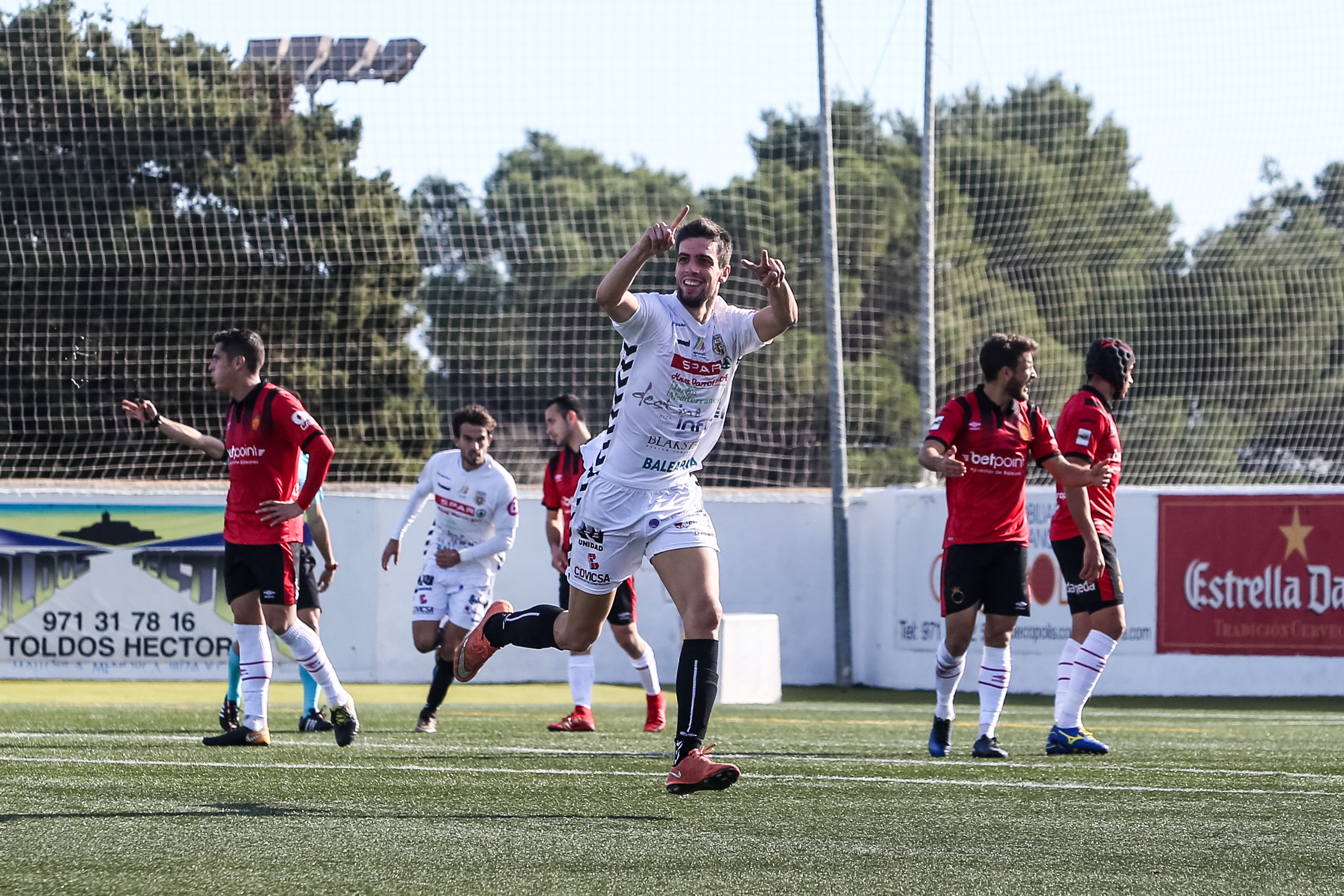 Górriz, celebra el gol que le marcó al Mallorca en Santa Eulària. Foto: Toni Escobar