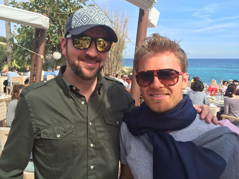 Rosberg visitó la playa de ses Salines y es Cavallet, donde se fotografió con el relaciones públicas Juan Mesa ‘Labios’ y el hijo del exjugador y exentrenador del Real Madrid y de la selección española, José Antonio Camacho, como se aprecia en las imágenes que acompañan este texto.