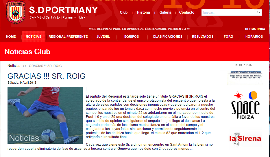 “Cada vez que viene este señor a dirigir un encuentro en Sant Antoni la lía bien; si no recuerden aquella eliminatoria de fase de ascenso a Tercera contra el Génova, donde nos dejo con dos jugadores menos…” concluye la nota publicada en el sitio web de un Portmany que vio dilapidadas su opciones de alcanzar al líder.