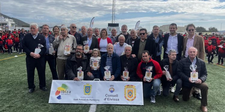 Durante la presentación de los equipos de las diferentes categorías del club que, en la actualidad, cuenta con más de 300 jugadores inscritos, su presidente, Nacho Andrés Roselló, junto con el alcalde de Sant Antoni, Marcos Serra, y el conseller de Esports i Joventut del Consell de Eivissa, Salvador Losa, han hecho entrega de una figura conmemorativa con el escudo del centenario a cada uno de los integrantes del equipo que ascendió a Tercera División en 1977.
