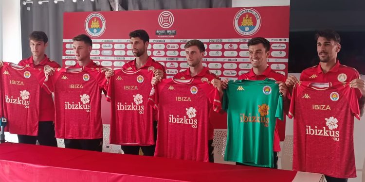 El presidente de la SD Ibiza, Antoni Marí “Moreras”, acompañado por los nuevos fichajes del club, ha estado al frente de una comparecencia pública en la que ha repasado la temporada pasada y en la que ha marcado los objetivos de la temporada 2024-2025.