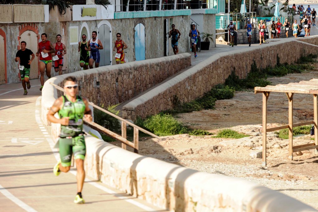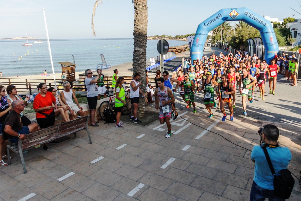 Cerca de un centenar de participantes tomaron la salida en la prueba, organizada por Bfit Sports Club y el Ayuntamiento de Sant Antoni y que constaba de 2.500 metros de carrera, 1.000 metros de natación y otros 2.500 metros de carrera. Unas distancias y un recorrido favorables para Torres y Sevillano, que ganaron con mucha solvencia.