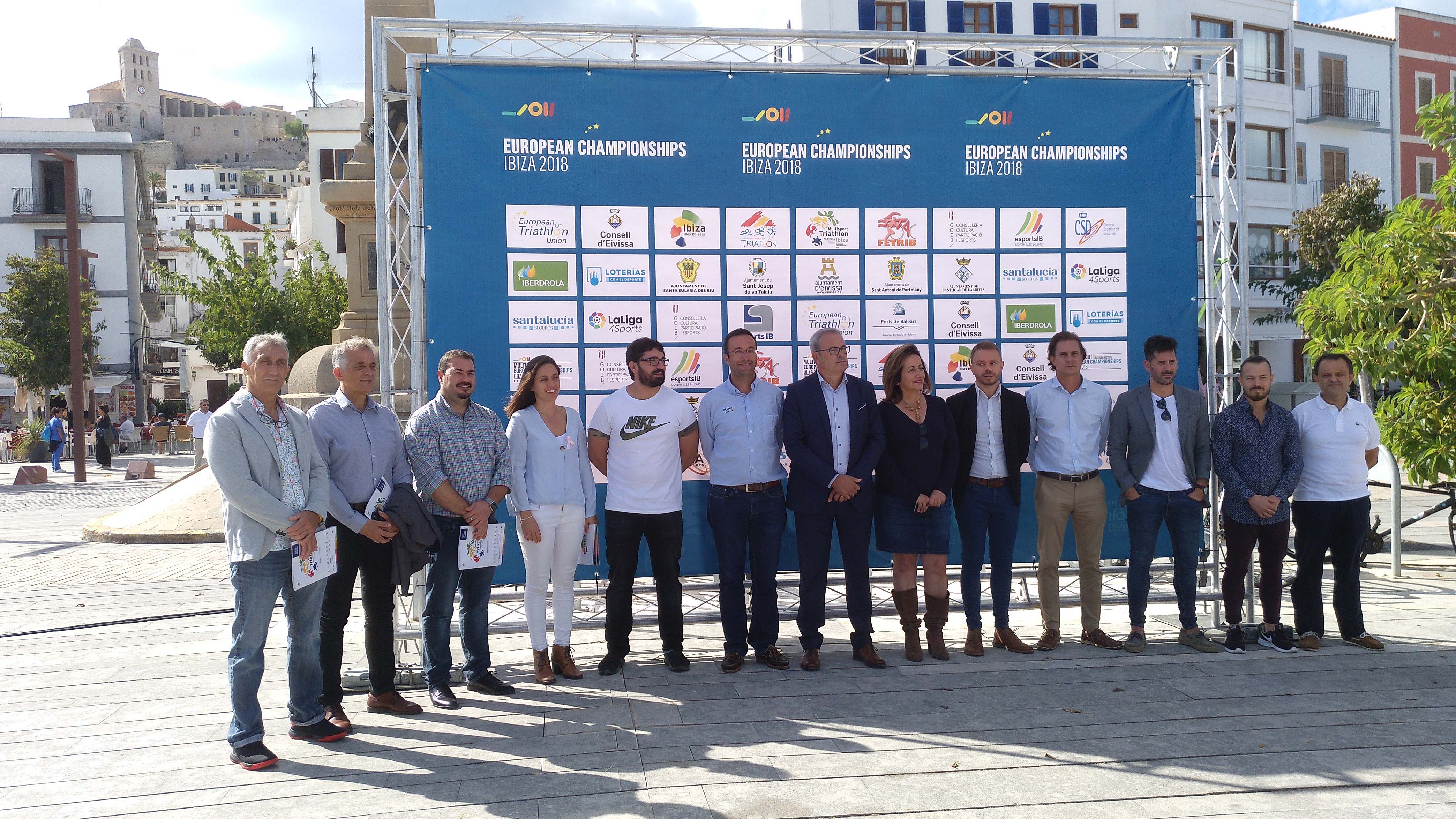 @Noudiari / La plaza de es Martell, en el puerto de Ibiza, en el mismo lugar en el que se ubicará la meta del Campeonato de Europa de Triatlón Media Distancia y Aquabike el próximo sábado 27 de octubre, ha acogido este miércoles la presentación oficial del Campeonato de Europa Multideporte Ibiza 2018, que comenzará oficialmente el viernes 19 con el desfile de naciones y ceremonia inaugural, y el sábado 20 y domingo con las competiciones de Duatlón, los tres días en Santa Eulària.