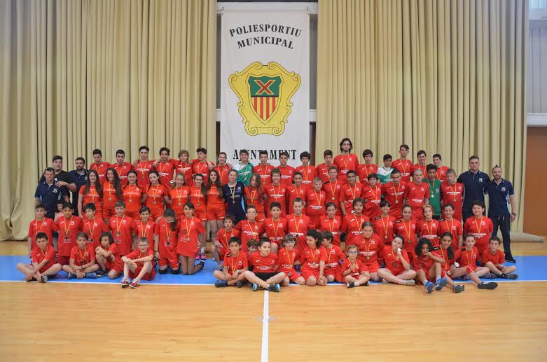 @Noudiari / Durante la mañana del pasado sábado se celebró en el pabellón municipal de Santa Eulària la fiesta de fin de temporada de los equipos del club. Como aperitivo a todo lo que vendría, se celebró una Diada con los más pequeños y con la presencia del Bm San Antonio, el resultado era lo de menos, mientras las gradas se iban llenando con jugadores del club, además familiares y amigos inundaban las gradas.