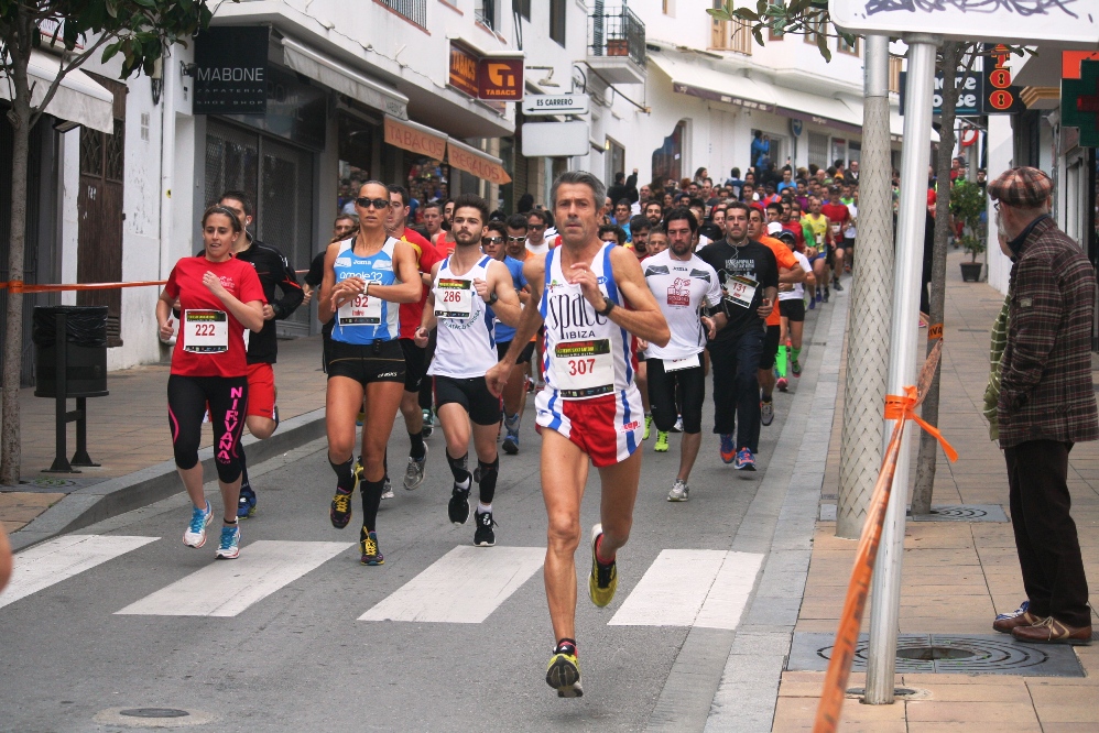Mientras tanto, Ángel Blanco se imponía en los 5 kilómetros con 16’04» minutos, por delante de Jesús Sánchez (CC Sant Antoni) y Xavi Bonnín (s’AiguaBlava Maioris) . «Ha sido una carrera muy rápida. Jesús Sánchez y yo hemos marcado desde el principio un fuerte ritmo, hasta que conseguí marcharme en solitario más o menos a la mitad de la carrera. Este año he optado por los cinco kilómetros porque mañana domingo disputo la final insular de cross y quiero llegar en buenas condiciones a esta prueba», aseguró Blanco. En la categoría femenina, Sabina Corral se impuso a Clara Sala (Ibiza Runners) y Marga Prieto (s’AiguaBlava Maioris).