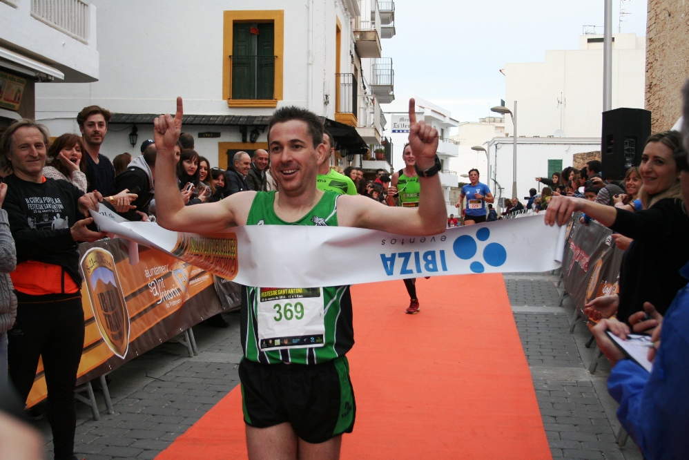 @C. Vidal / La II Cursa Popular Festes de Sant Antoni fue, una vez más, para un triatleta. Si el año pasado el vencedor fue Daniel González, en esta ocasión el triunfo fue para Josep Torres (Triatló Santa Eulària), que se impuso a los principales favoritos y auténticos especialistas, Samuel Urbano y José Antonio Planells.