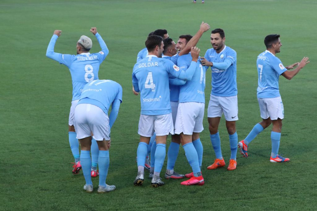 • Los jugadores del Ibiza celebran la consecución de uno de los goles ante el Celta de Vigo en Can Misses. Foto: Paco Natera (Fútbol Pitiuso).