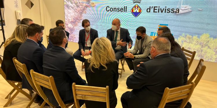 El presidente del Consell Insular de Eivissa, Vicent Marí, y el conseller de Deportes, Salvador Losa, han mantenido en el stand de Ibiza en Fitur un encuentro con el presidente de la Federación Española de Triatlón, José Hidalgo, al que han acudido también representantes de los cinco ayuntamientos de la isla para seguir avanzando en la organización de este Mundial.
