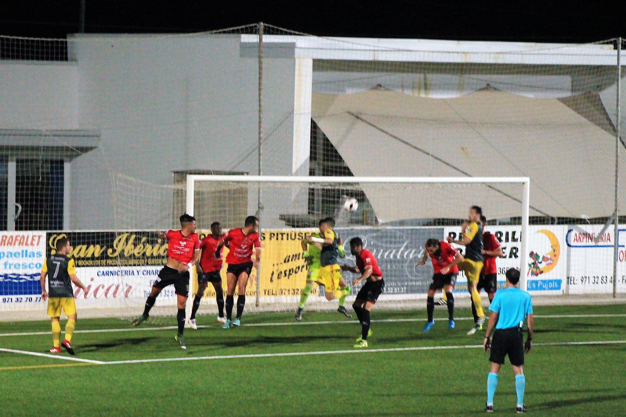 Entretanto los formenterenses recopilaban ocasiones de gol. Nando, Fobi, Vinicius y Garmendia pudieron marcar en una sucesión de oportunidades que se sucedieron una tras otras entre los minutos 11 y 24 y que, sin duda, eran toda una declaración de intenciones de los futbolistas de Tito García Sanjuán, que dominaban pero no concretaban.