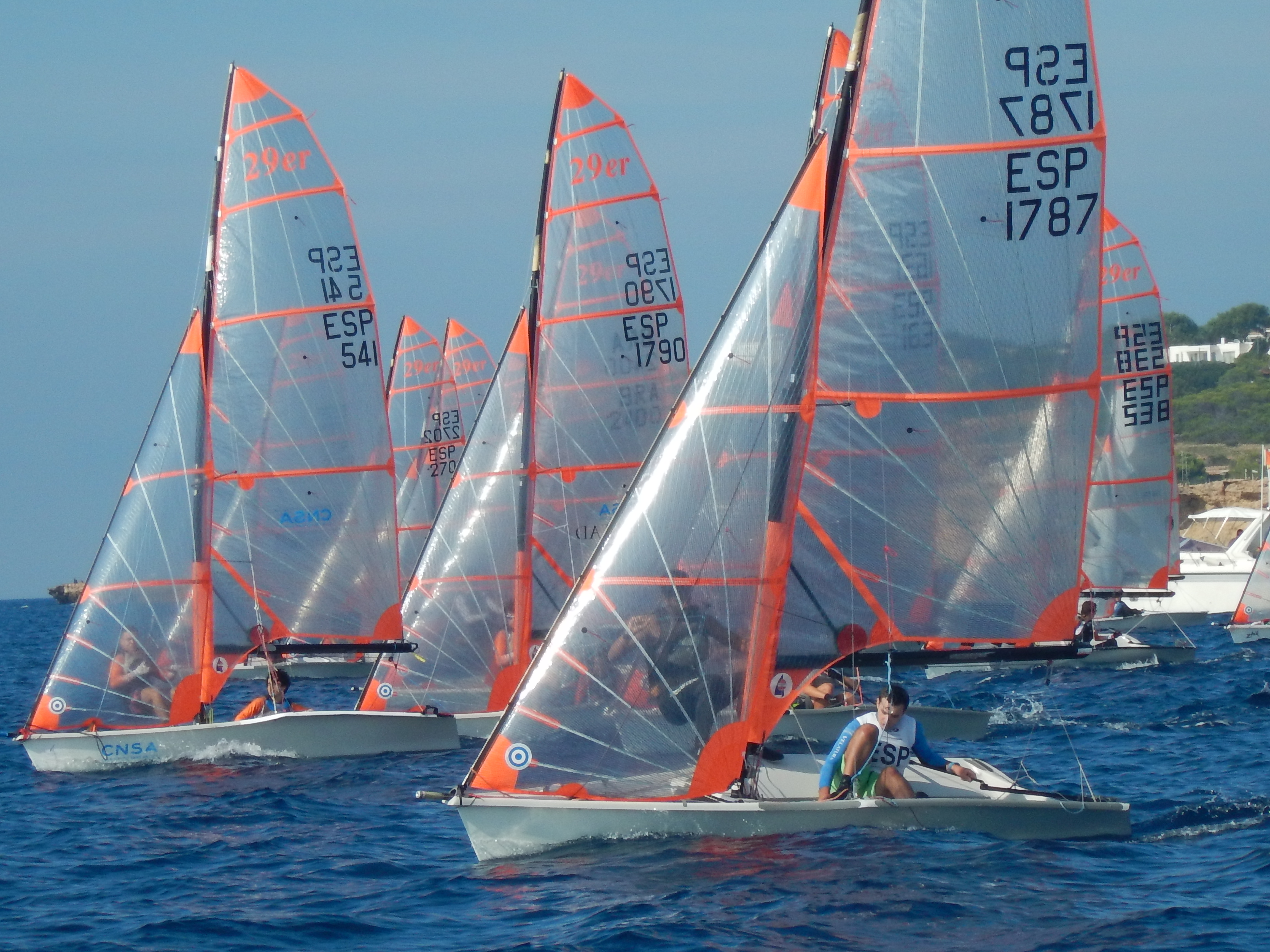 @Noudiari / Sensacional primera jornada de la Copa de España de 29er y Musto Skiff que organiza Es Nàutic en la bahía de Portmany y en la que participan 30 embarcaciones. El Comité de Regatas ha cumplido con el programa y se han logrado finalizar las cuatro pruebas previstas para la primera jornada de competición.