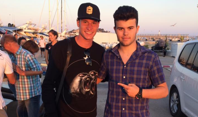 El futbolista germano, campeón del mundo con su selección en Brasil 2014, se ha mostrado muy simpático a su llegada a puerto y no ha dudado en hacerse una foto con Aarón, un aficionado.