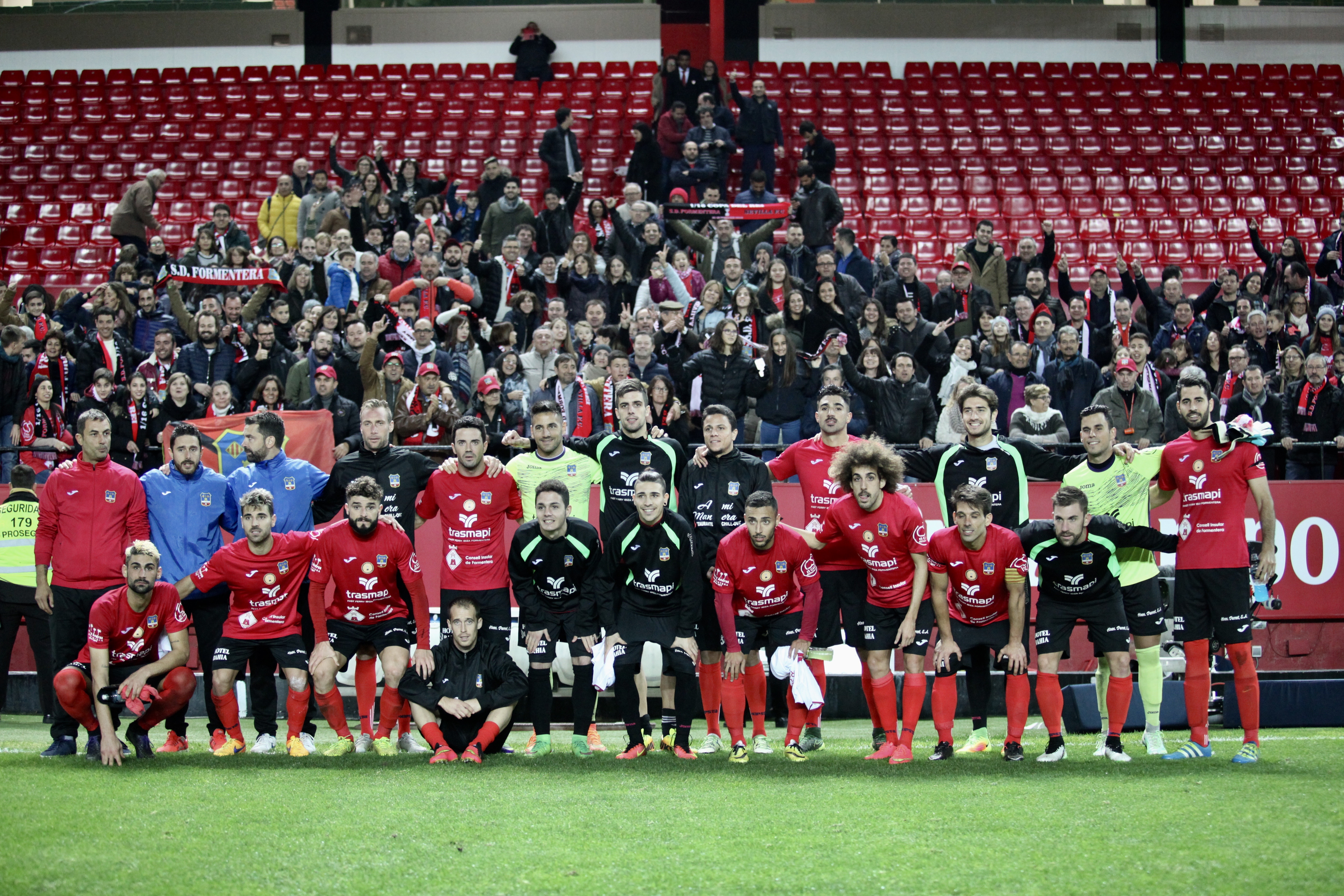 @Noudiari / El Formentera ha disfrutado de una eliminatoria de dieciseisavos de final ante un Primera División de primera línea, el Sevilla. El resultado, a esta alturas, era lo de menos, ya que las diferencias entre el cinco veces campeón de la Europa Leage y el humilde club de Tercera División de Formentera son enormes. En esta galería fotográfica realizada por Kevin Cabezuelo se puede apreciar la fiesta que supuso para la afición de la menor de las Pitiüses y los jugadores del primer equipo de la entidad el encuentro disputado en la capital andaluza. (crónica del partido)