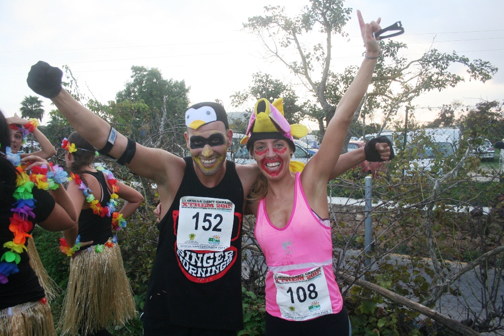 Muchos de los participantes sólo querían pasar un buen rato. Otros querían llevarse el triunfo. Es el caso de Carolina Gámez (CA Santa Eulària), que ha ganado en las tres ediciones en la categoría femenina. En esta ocasión lo hizo disfrazada de Minnie Mouse y con un tiempo de 34’57» minutos. En la categoría masculina, el vencedor fue Carmie Wong (Triatló Santa Eulària), que mejoró el segundo puesto del año pasado y se hizo con la victoria con 28’37» minutos.