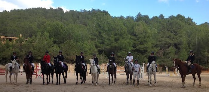 En la imagen, algunos de los participantes en el cocncurso Festes de Santa Gertrudis de salto de obstáculos