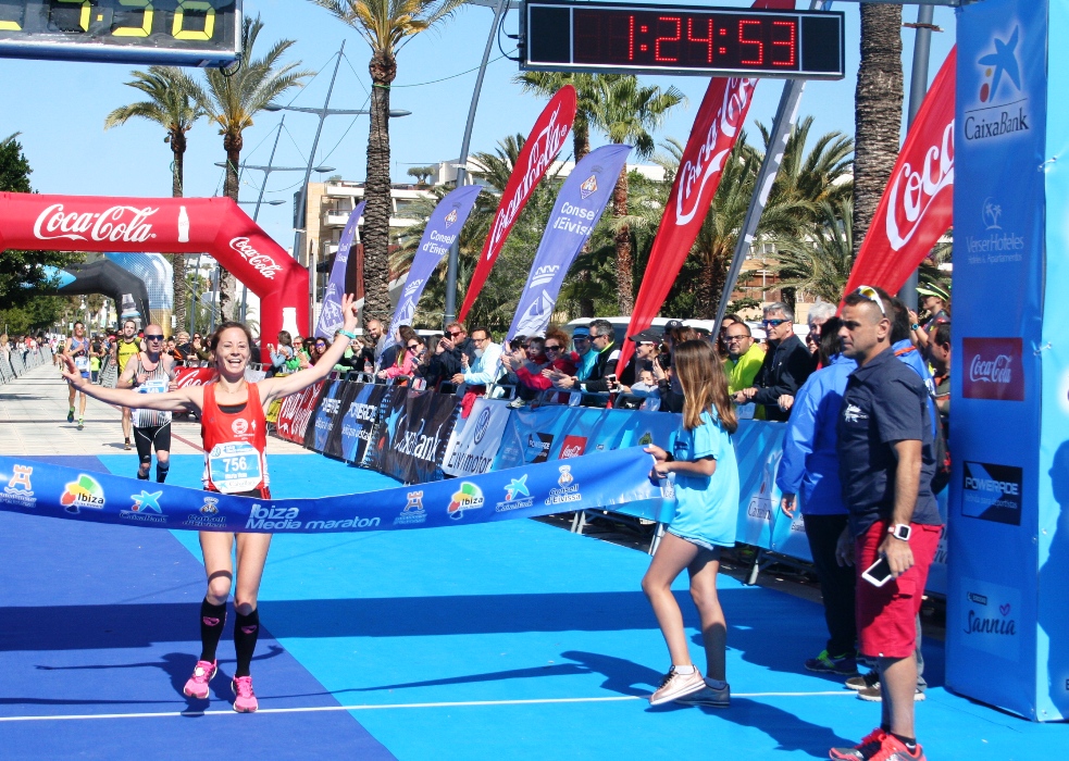 En la categoría femenina, Marta Vena (CA Quiebrajano Jaén) se llevó el gato al agua y logró la victoria con un tiempo de 1h24’37», superando en algo menos de dos minutos a la ganadora de la pasada edición, Indre Barkute (Bfit Ibiza Triatlón, 1h25’17»), que sigue con su preparación para el Ironman de Lanzarote. «Cuando me enteré que la Ibiza Media Maratón era en el puente de mayo y que tenía vacaciones, no me lo pensé dos veces y me vine. Había visto las marcas de otros años y sabía que tenía posibilidades de hacer un buen tiempo. He ido controlando el ritmo en todo momento y, en el kilómetro 15 más o menos, superé a la segunda clasificada y ya fui directa a la meta sin mirar atrás», comentó la atleta jiennense.