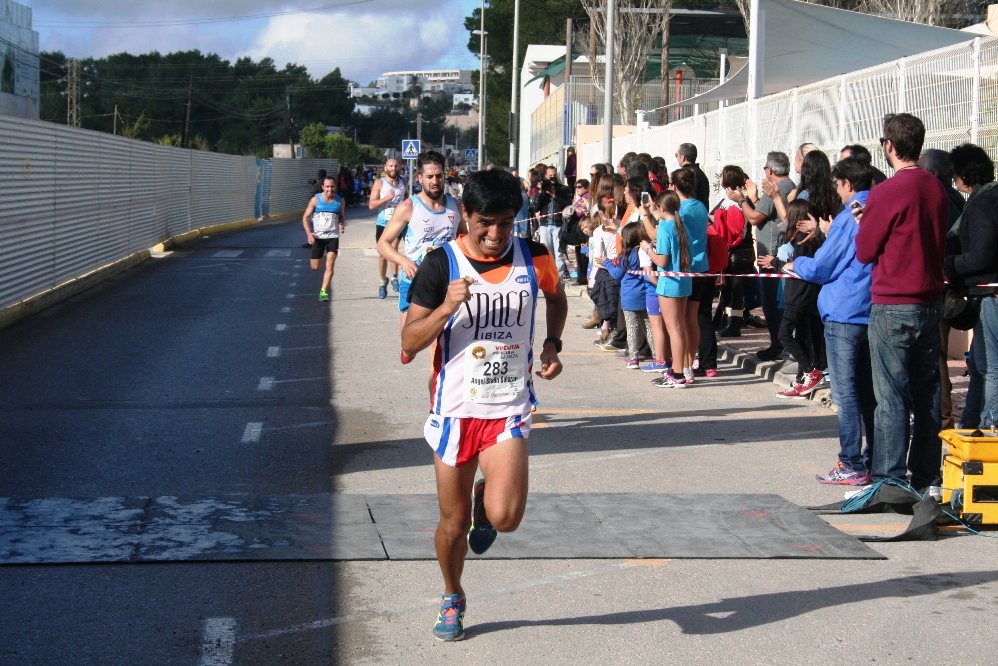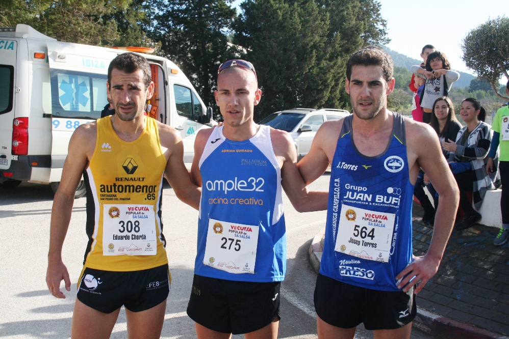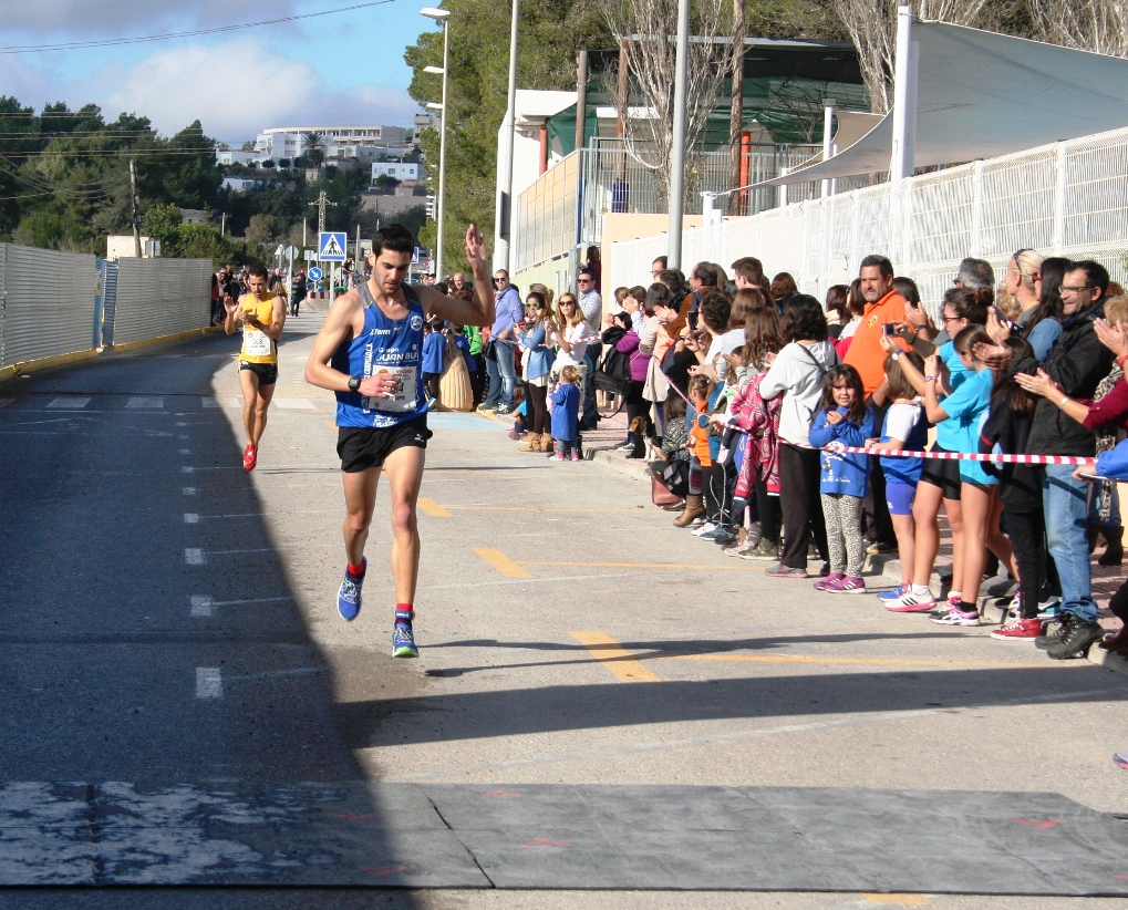 La prueba, de 5,5 kilómetros, es bastante dura, aunque fue muy rápida. Adrián Guirado llegó en primera posición con un tiempo de 17:22 minutos, que también es récord, aunque los cambios en el recorrido, sin salir ni entrar por el campo de fútbol, explican esa marca. El triatleta Josep Torres (Club Triatlón Ibiza Fanegas) fue segundo con 17:57 seguido, a sólo cuatro segundos de diferencia, por Eduardo Chordá (Club Automenor Cross Cartagena).