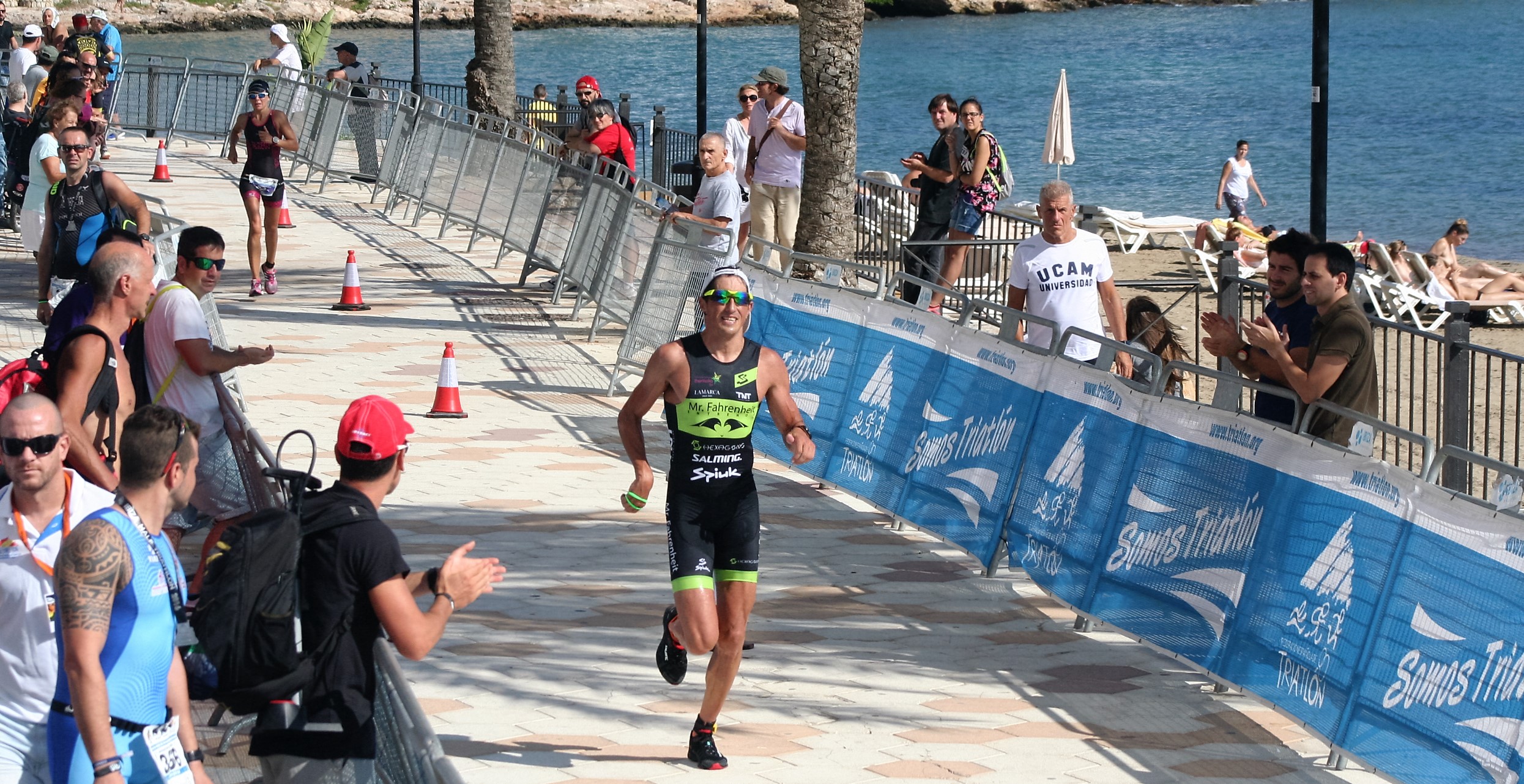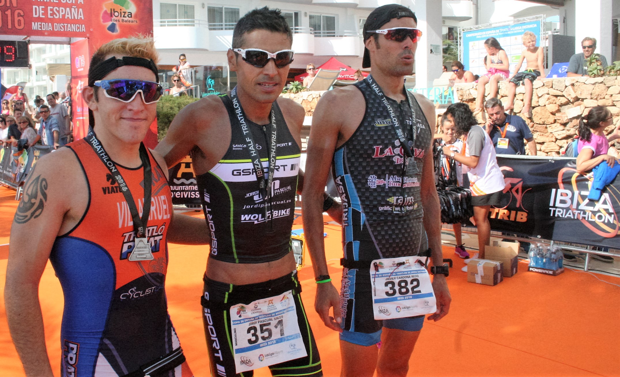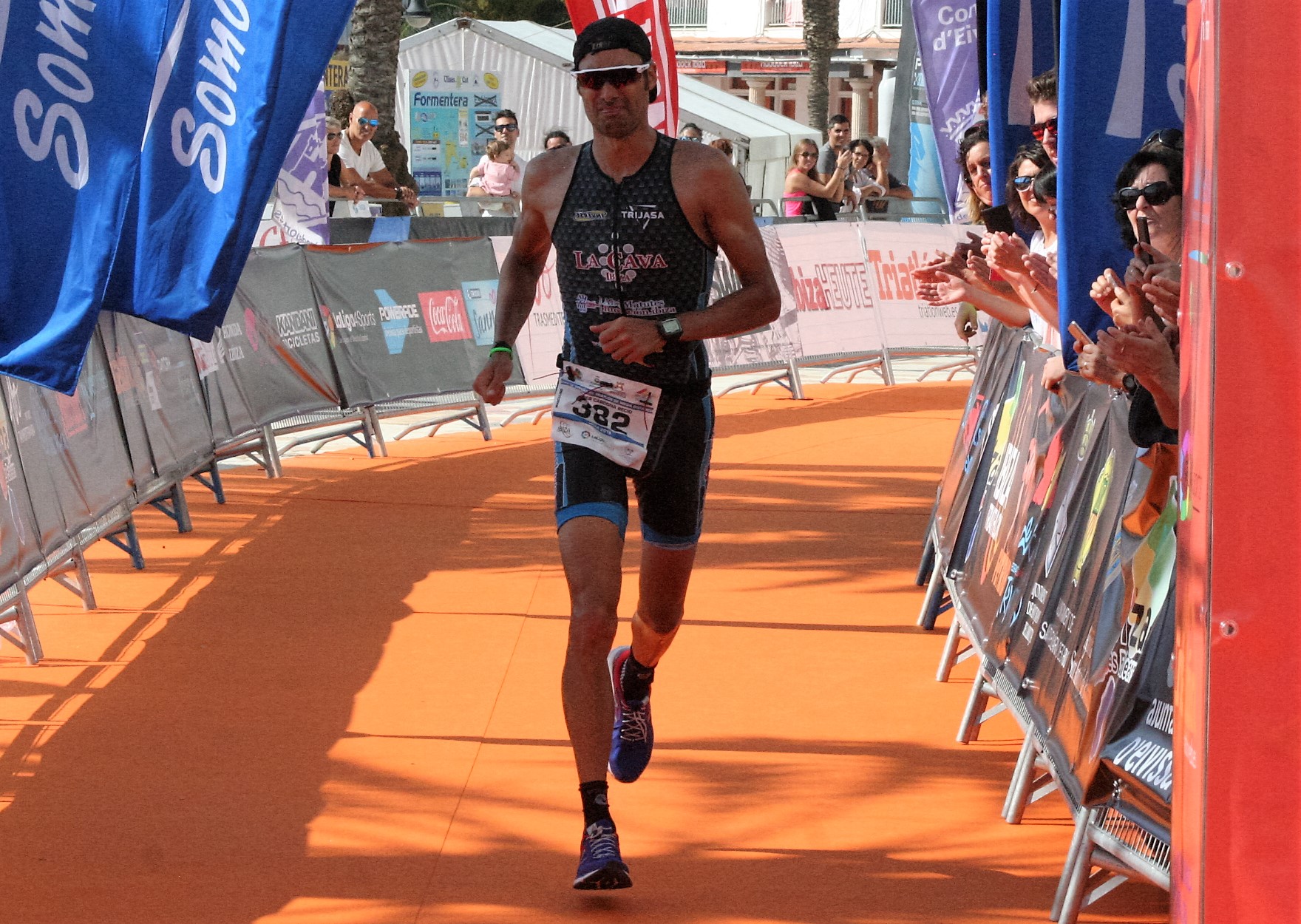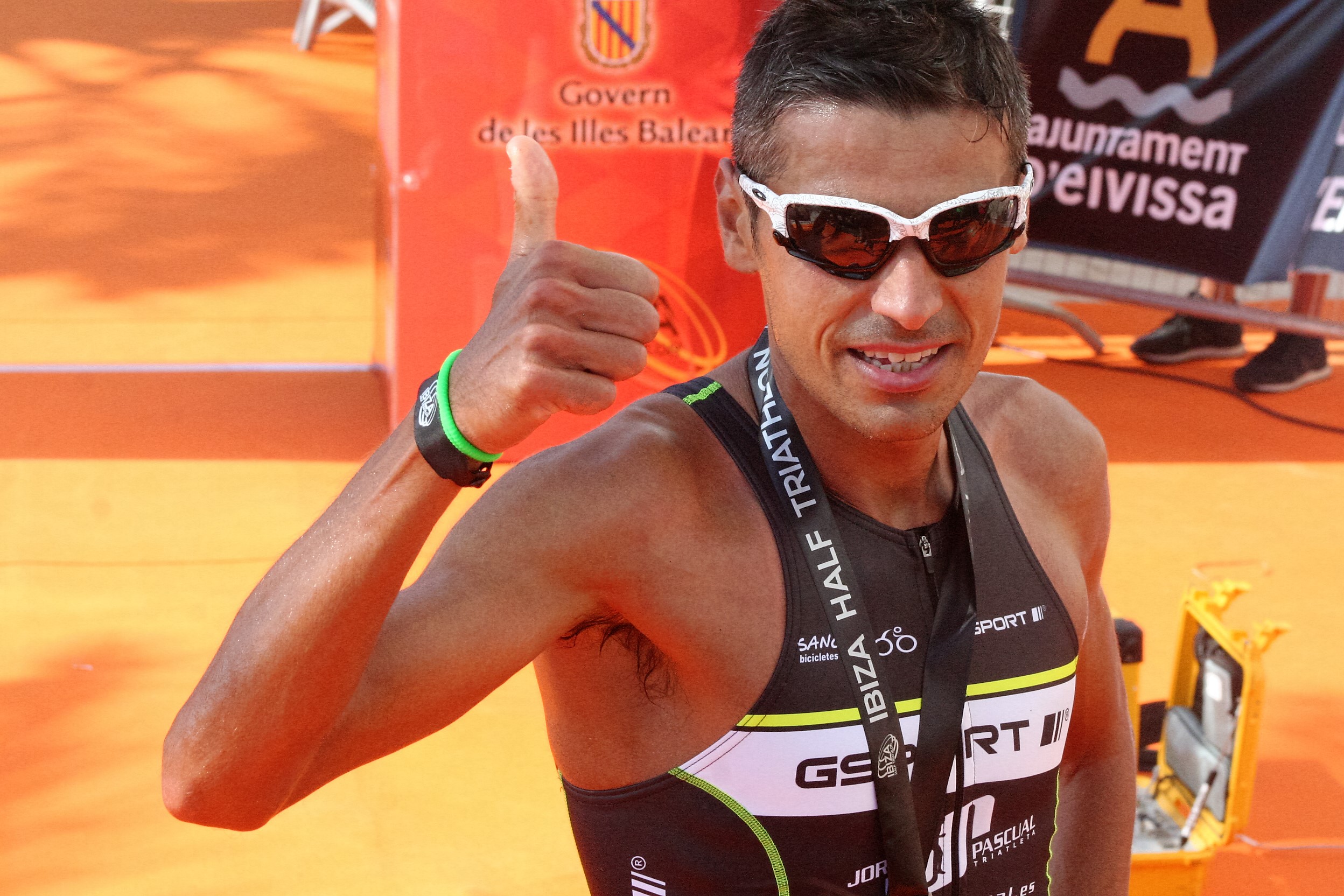 La noticia más feliz para los locales llegaba de la mano de Javier Cardona en la última prueba de la Copa de España de media distancia, que se disputaba de forma simultánea. Al vilero le ha cambiado el físico desde que decidió pasarse al triatlón. Más fino que cuando nadaba en la piscina olímpica, Cardona cada vez se defiende mejor sobre la bicicleta. El del Trijasa ha salido primero del agua, tras completar de forma brillante los 2 kilómetros de natación en aguas abiertas que abrían la carrera, y ha gestionado su ventaja respecto a sus perseguidores en el tramo ciclista (85 kilómetros). En la carrera a pie (20 kilómetros), su punto débil, el ibicenco perdió dos posiciones. Con un tiempo de 4 horas, 21 minutos y 20, Cardona ha entrado en meta muy emocionado y mascullando un «no me lo puedo creer». Acababa de terminar su primer triatlón de media distancia. Solamente han podido rebasarle los catalanes Jordi Pascual (en el kilómetro 2 de la media maratón final) y Nacho Villarruel.