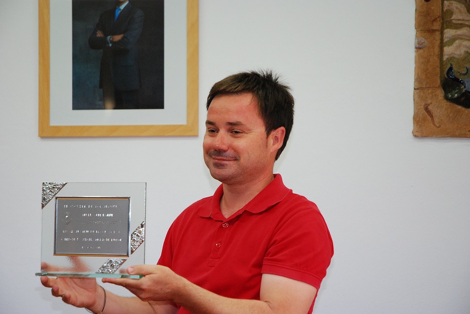 Jaume Ferrer ha lliurat una placa commemorativa amb la data de l’homenatge i la inscripció “en reconeixement pel gran mèrit de proclamar-se campió de la tercera divisió de futbol”, que ha recollit Felip Portas, president de la Societat Esportiva Formentera.