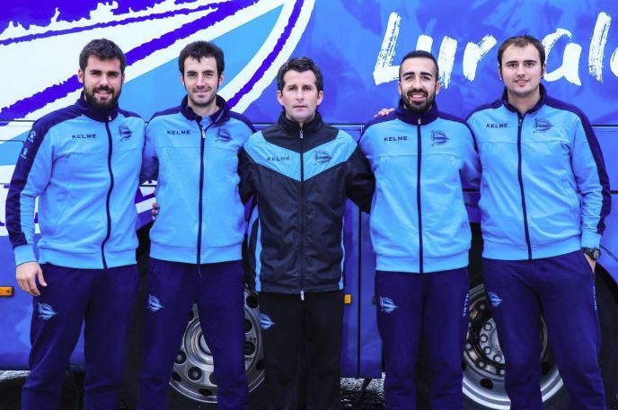 Iván Gómez, segundo por la derecha, posa junto con el staff técnico del Alavés B.